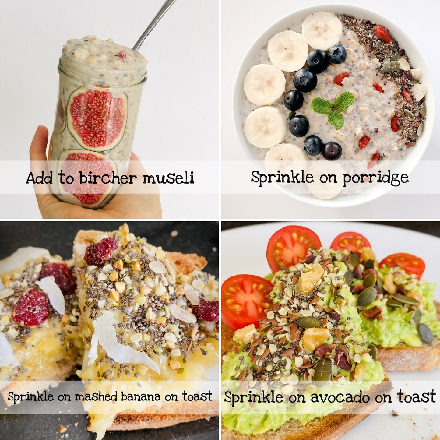 Simply sprinkle 1-2 tablespoons over porridge, cereal, yogurt, overnight oats, smoothies, fruit salads and more, for a deeply nourishing & healthy upgrade. The perfect solution to boost your health naturally.